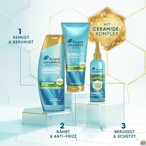 Das Head & Shoulders DERMAXPRO Anti-Schuppen Shampoo ist speziell für trockene, juckende Kopfhaut entwickelt. Es sorgt für sofortige Linderung, unterstützt die Wiederherstellung der Hautbarriere mit Ceramiden und Aloe Vera, und bekämpft gezielt Schuppen. Klinisch getestet und dermatologisch formuliert, reinigt es sanft die Kopfhaut und spendet Feuchtigkeit.